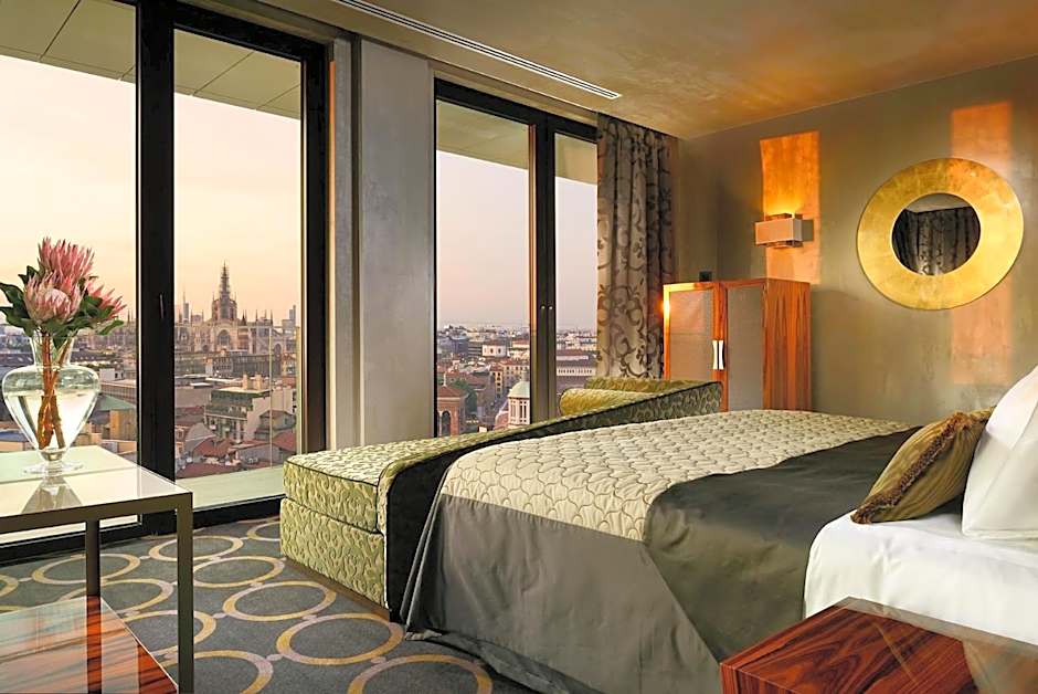 Boasting a balcony overlooking Milan Cathedral, this air-conditioned suite is composed of a main bedroom and separate living area with a sofa bed. The private bathroom includes a spa bath, soft bathrobes and free toiletries.