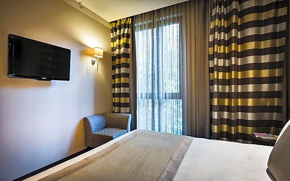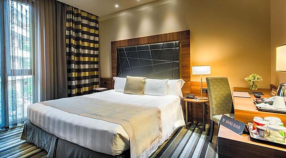 Air-conditioned room with soft bathrobes, a flat-screen TV with Sky channels, and a mini-bar.